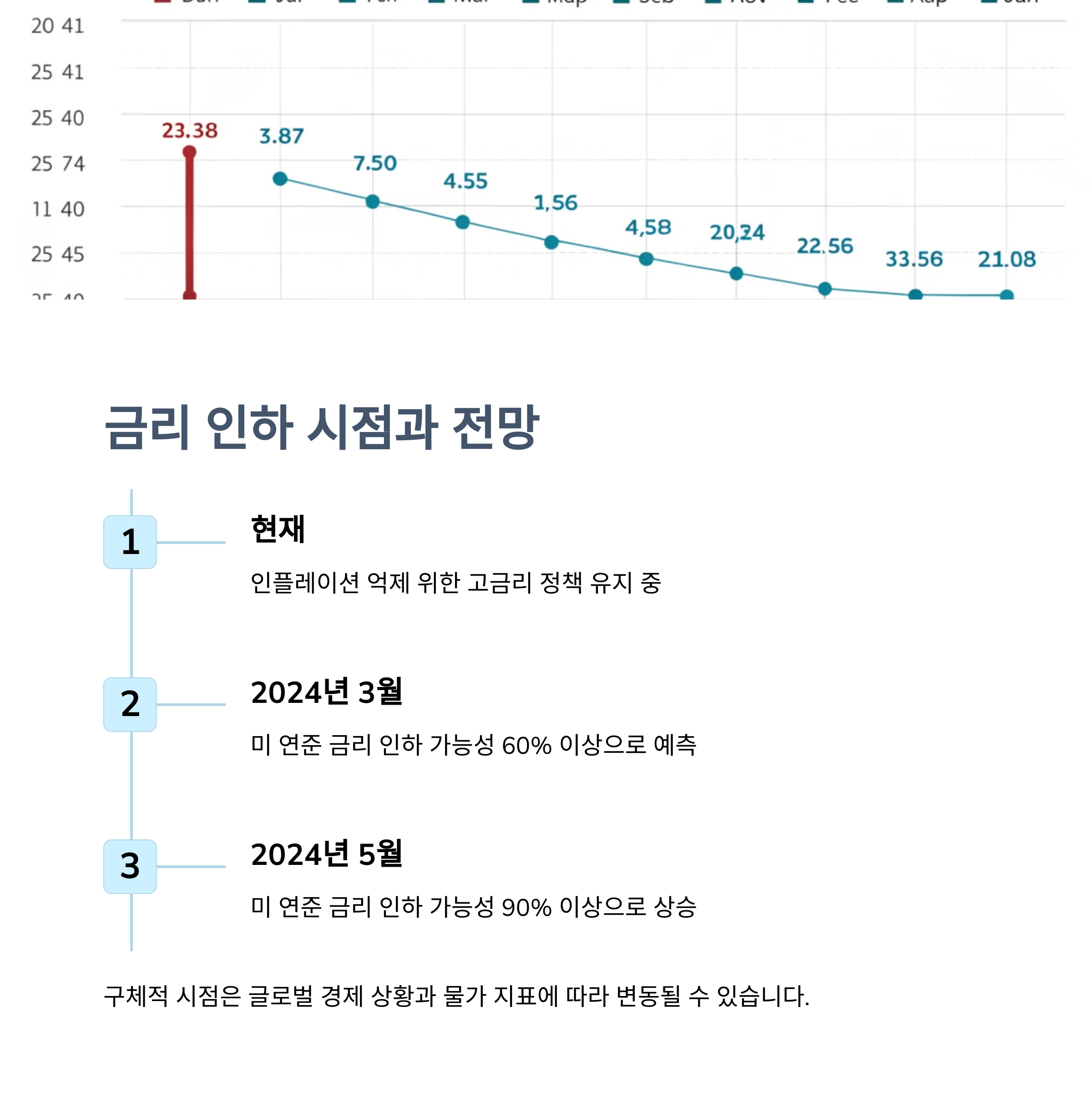 | 인플레이션 | 물가 상승으로 소비자 및 기업 부담 증가 | 점진적 안정화 예상 |