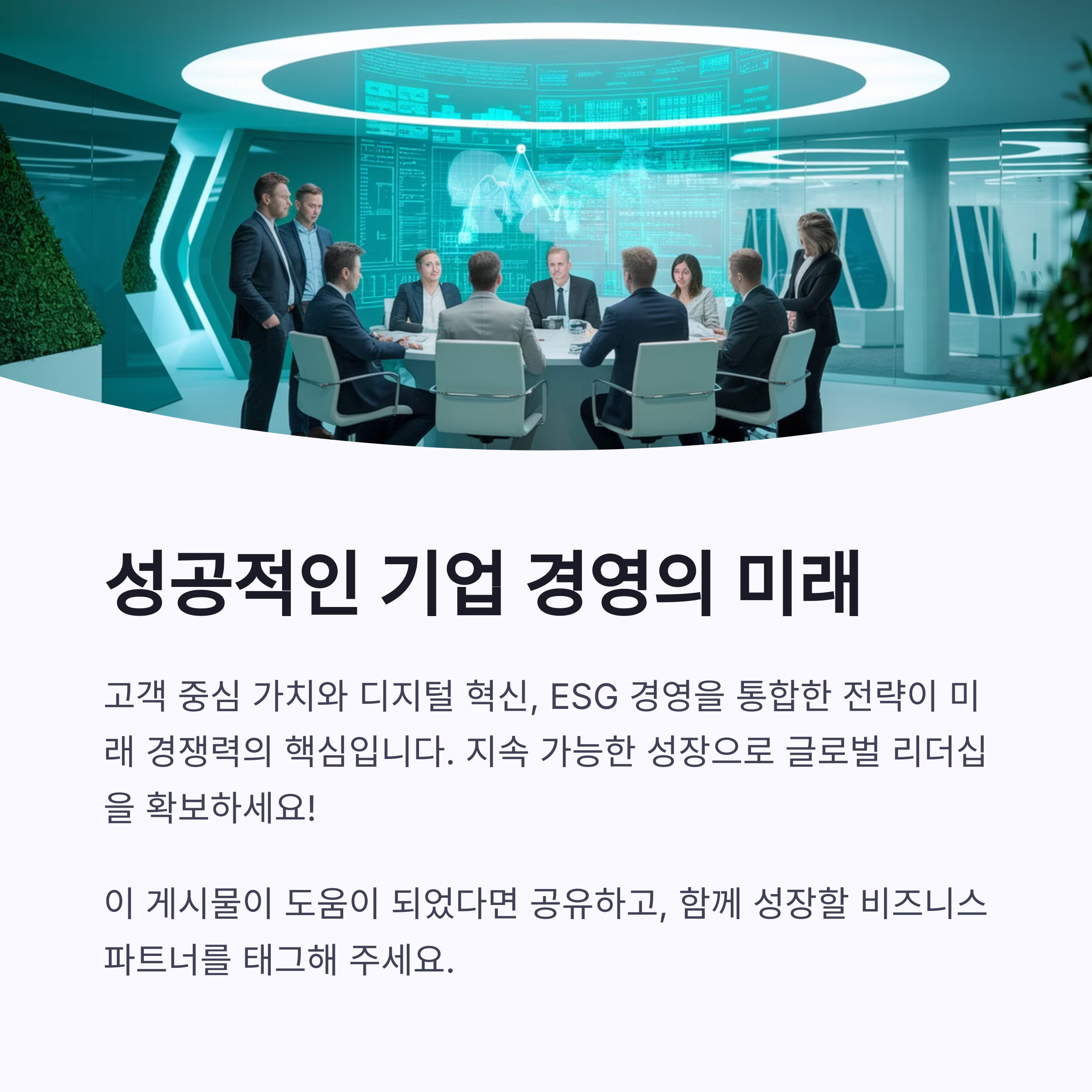 성공적인 비즈니스 모델을 구축하기 위해서는 고객 중심 전략, 구독 경제 모델, ESG 경영과 같은 핵심 요소를 고려해야 합니다. 변화하는 시장 환경 속에서 지속적인 혁신을 통해 경쟁력을 유지하는 것이 중요합니다. 여러분의 기업이 성공적인 미래를 향해 한 걸음 더 나아갈 수 있도록 이 전략들을 활용해 보세요!
