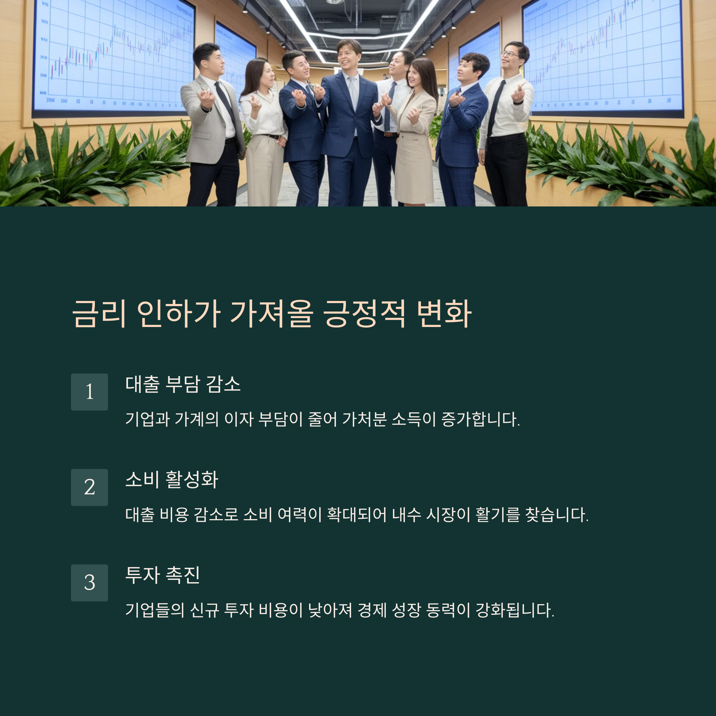 | 금리 인하 | 소비 증가 | 투자 활성화 |