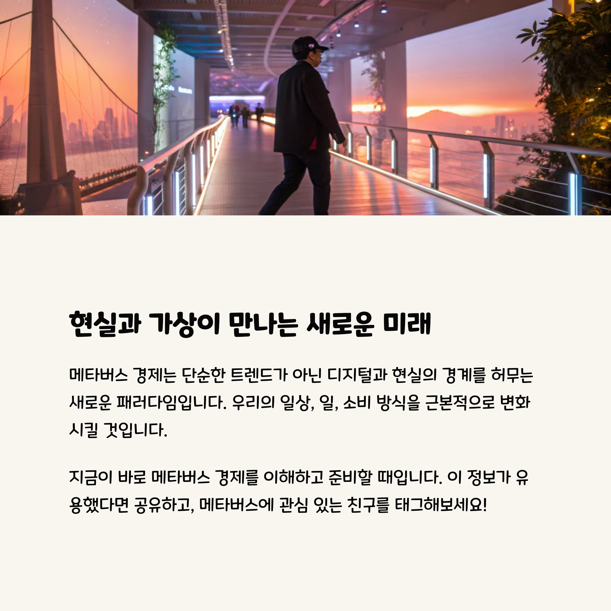 이번 글에서는 **메타버스 경제가 가져올 변화와 기회**, 그리고 **기업과 개인이 어떻게 대응해야 하는지**에 대해 살펴보겠습니다.