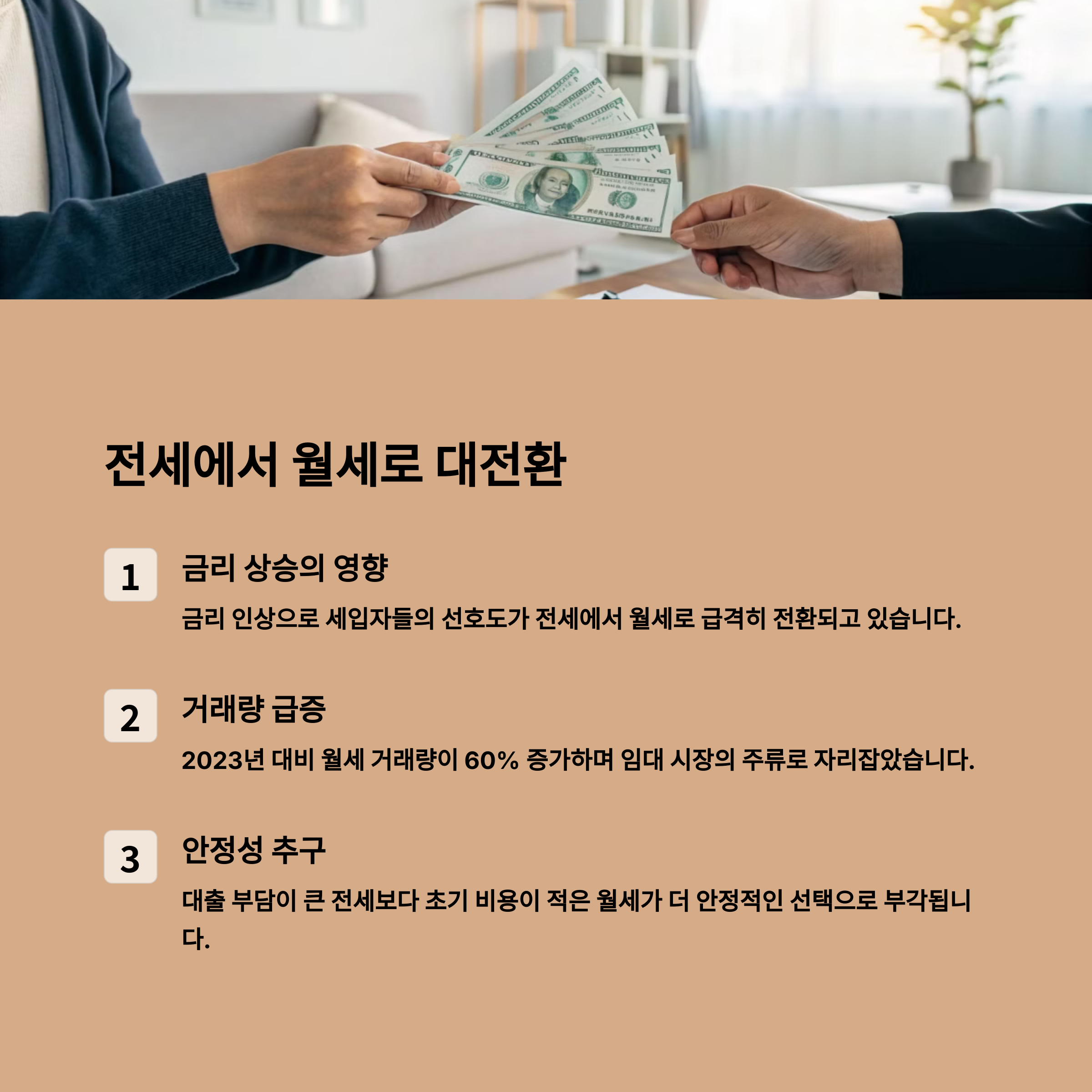 | 투자자의 대응 전략 | 월세 시장 확대 대비, 공실 리스크 관리, 안정적 수익 모델 구축 |