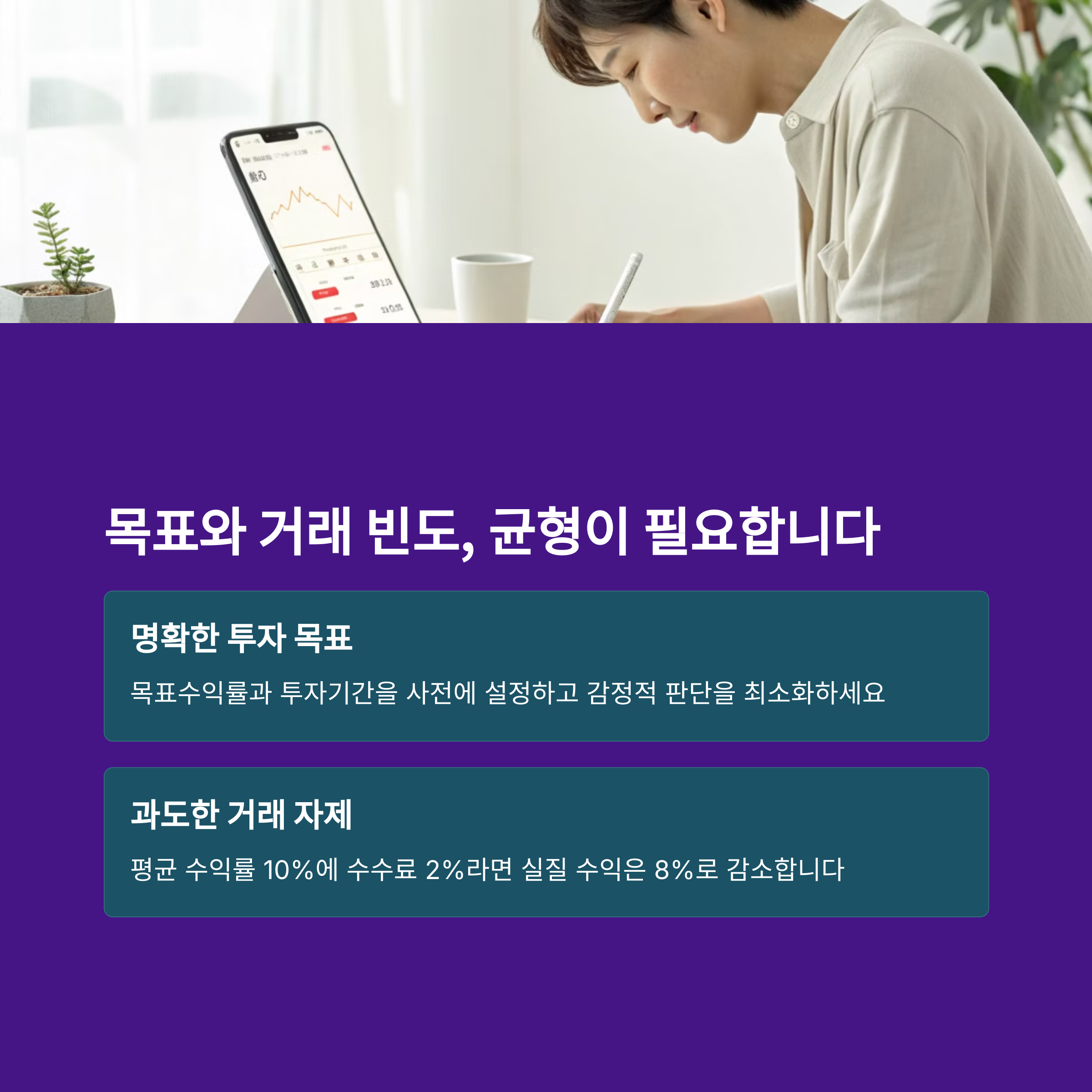 과도한 매매는 수수료 손실과 심리적 피로를 유발할 수 있습니다. - 자기만의 기준 없이 따라 하기