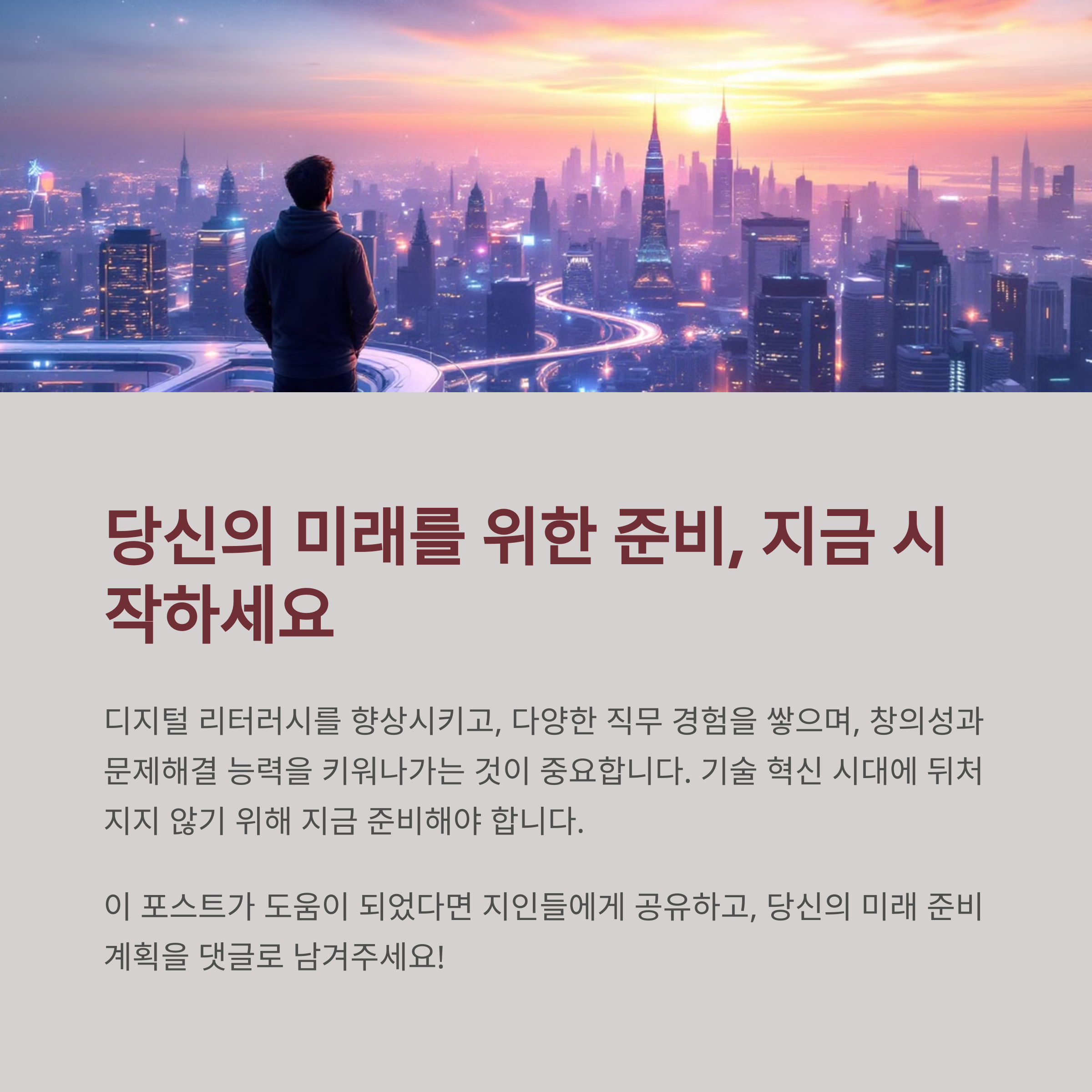 기술은 미래 경제의 중심축입니다. 우리는 혁신의 혜택을 누리는 동시에, 그 변화에 유연하게 대응해야 합니다. 생산성과 창의성의 균형 속에서 모두가 함께 성장할 수 있는 기반을 만들어가야 할 때입니다.