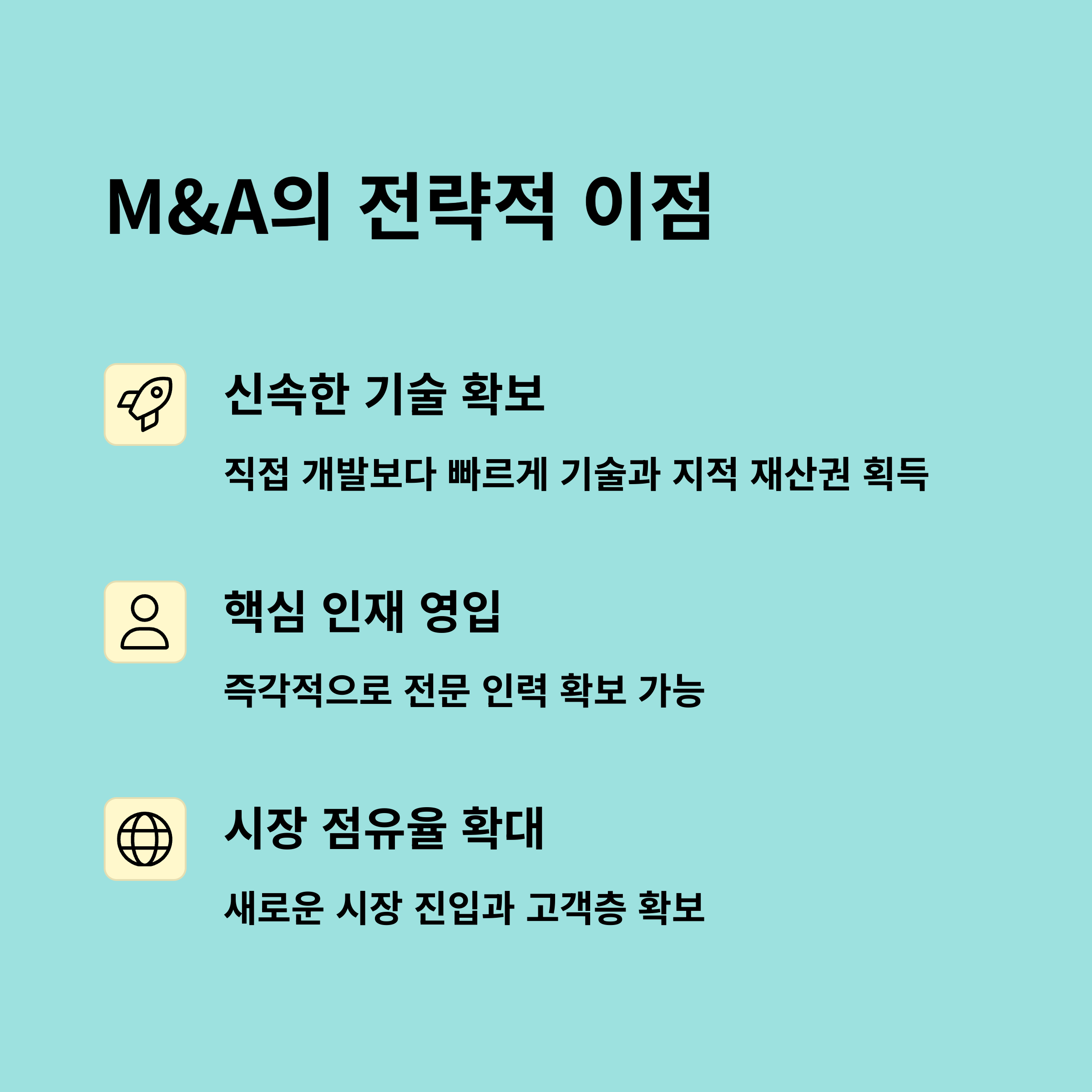 | 왜 중요한가? | 기업 경쟁력 강화, 시장 점유율 확대, 기술 확보 등 전략적 목적과 경제적 파급력이 크기 때문 |