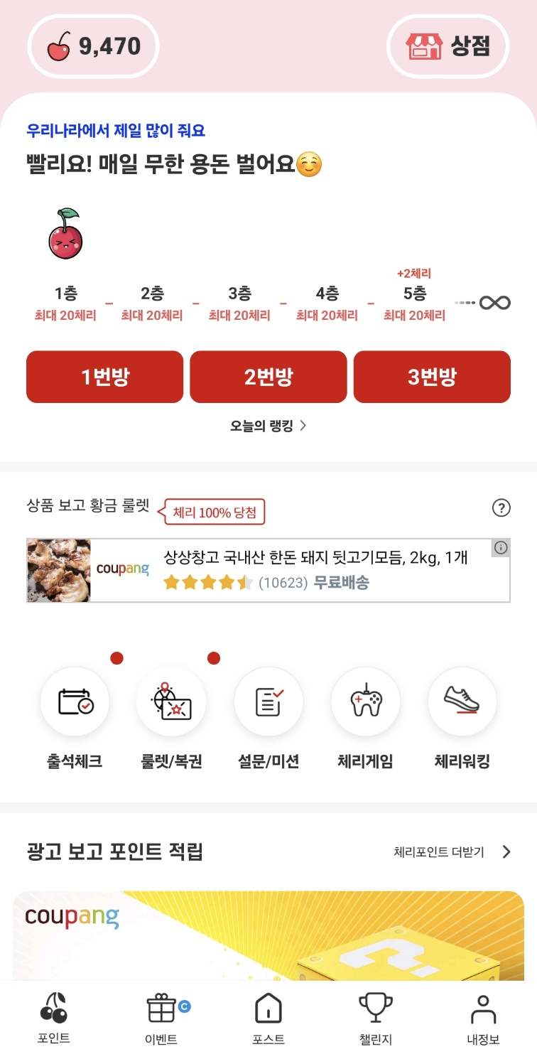 안녕하세요 체리포인트를 안지 이제 거의 한 달이 다되었네요! 제가 2월 4일부터 시작했는데요 ! 벌써 거의 만 원 가까이 벌었답니다 ! 제가 앱테크를 여러가지 해보면서 여기에 완전 정착을 해버렸는데요 ! 여러분들도 할 수 있는 쉬운 방법이랍니다!!