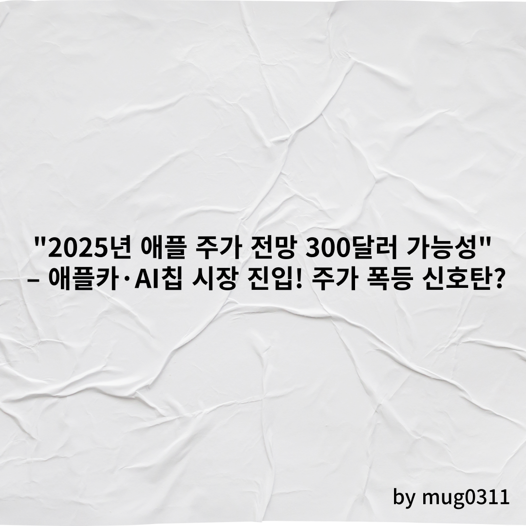 "2025년 애플 주가 전망 300달러 가능성" – 애플카·AI 칩 시장 진입! 주가 폭등 신호탄?
