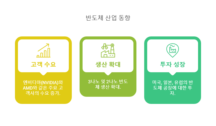 ✔ 글로벌 반도체 공장 투자 확대 → 미국·일본·유럽 공장 건설로 고객사 확대
